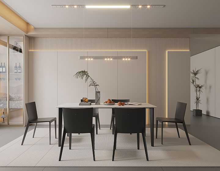 取消傳統燈槽型材依賴,運用燈條直卡式安裝技術,打造隱藏式光源,避免直射炫光與燈珠陰影。